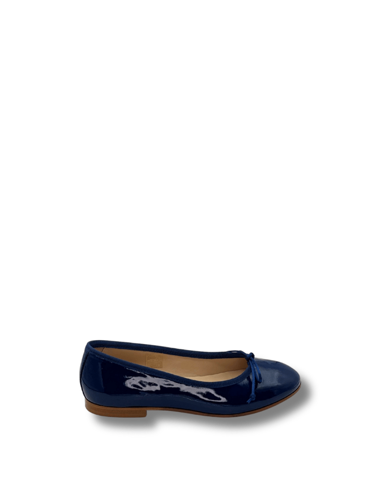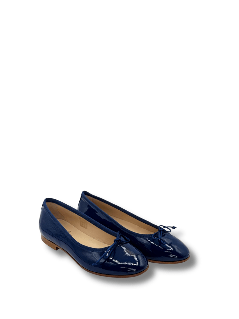 Skønne og super komfortable Apair ballerinaer i mørkeblå lakeret skind og med brune såler. Lille sløjfe på fronten. En rigtig fin sko til alsidigt brug.