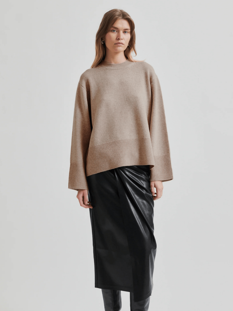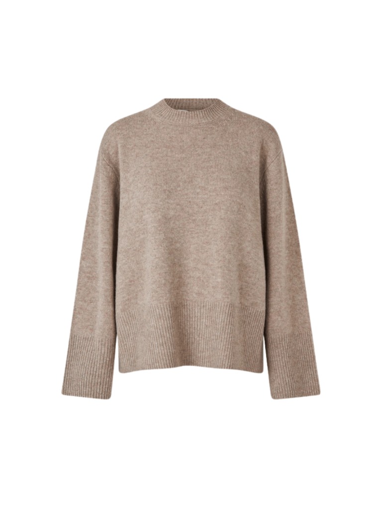 Lækker beige Second Female Alpha pullover med rund hals, fremstillet i blød, varm uld, der slet ikke kradser.