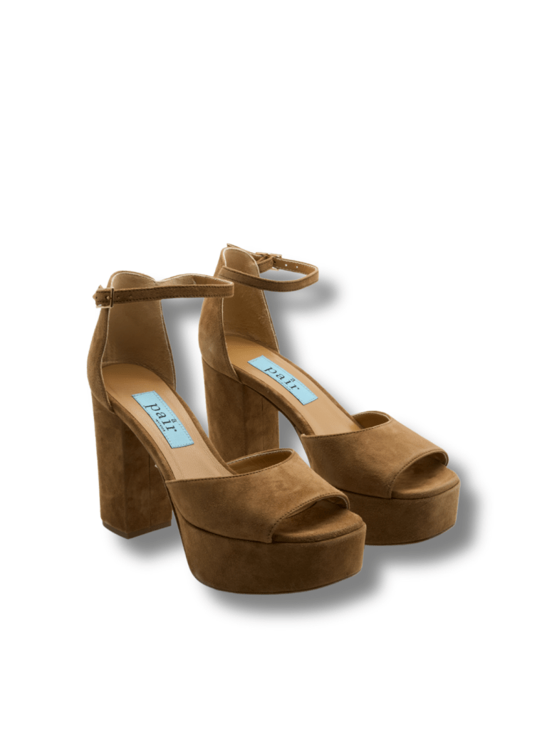Flotte høje Apair stiletter i brun ruskind med bred rem over tæerne og en ankelrem