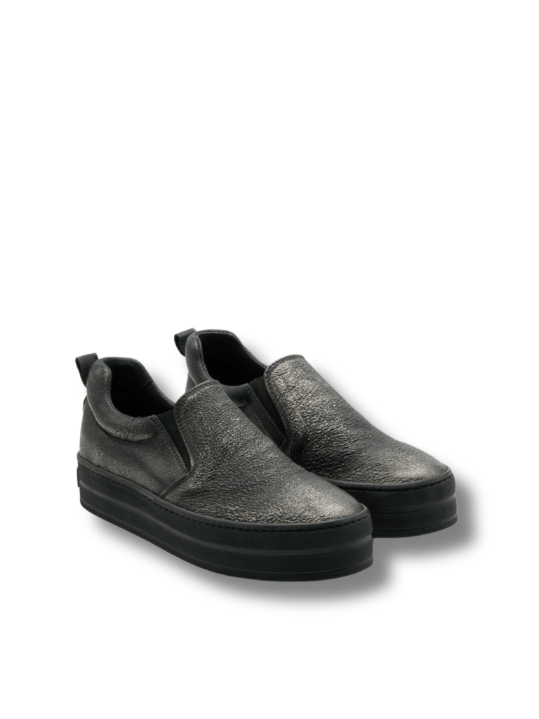 Skønne og super komfortable Apair sneakers i sort skind med et sølv skær og med sorte chunky gummi såler.