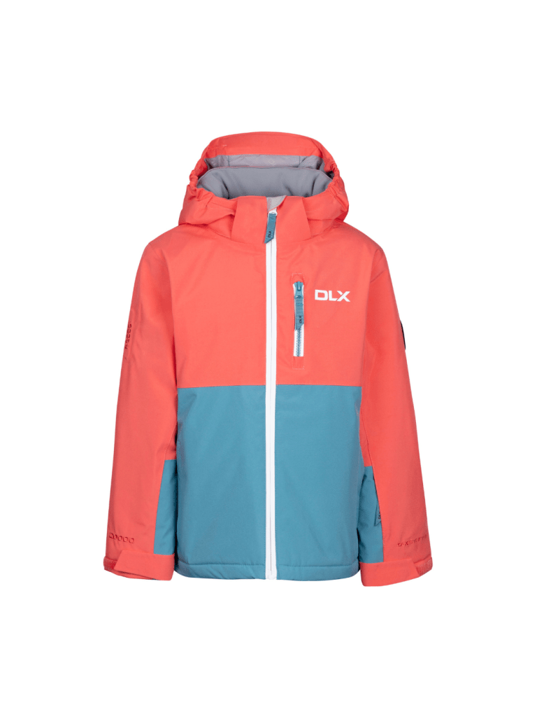 DLX Pauline er en stilfuld flerfarvet børne-skijakke i fersken og blå, designet til aktive børn, der elsker vintereventyr. Jakken er foret med Down Touch-isolering, som giver let og varm komfort på pisten.