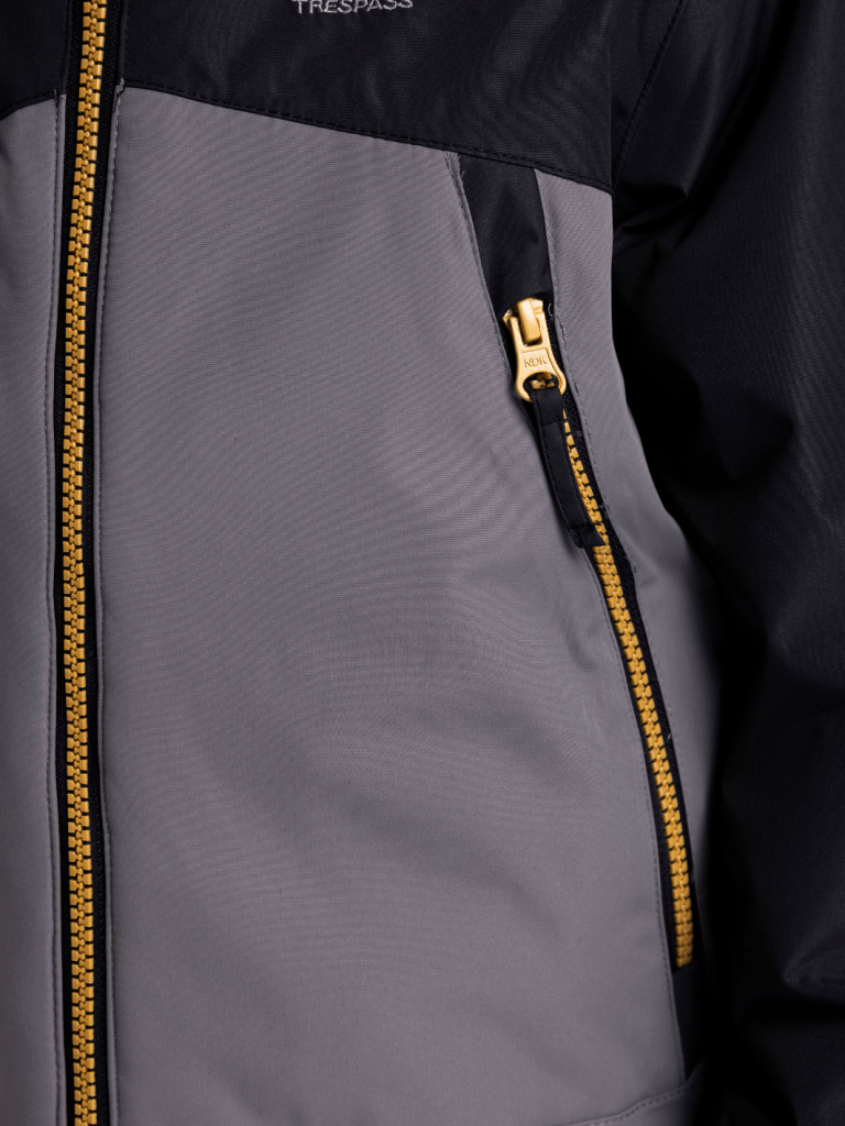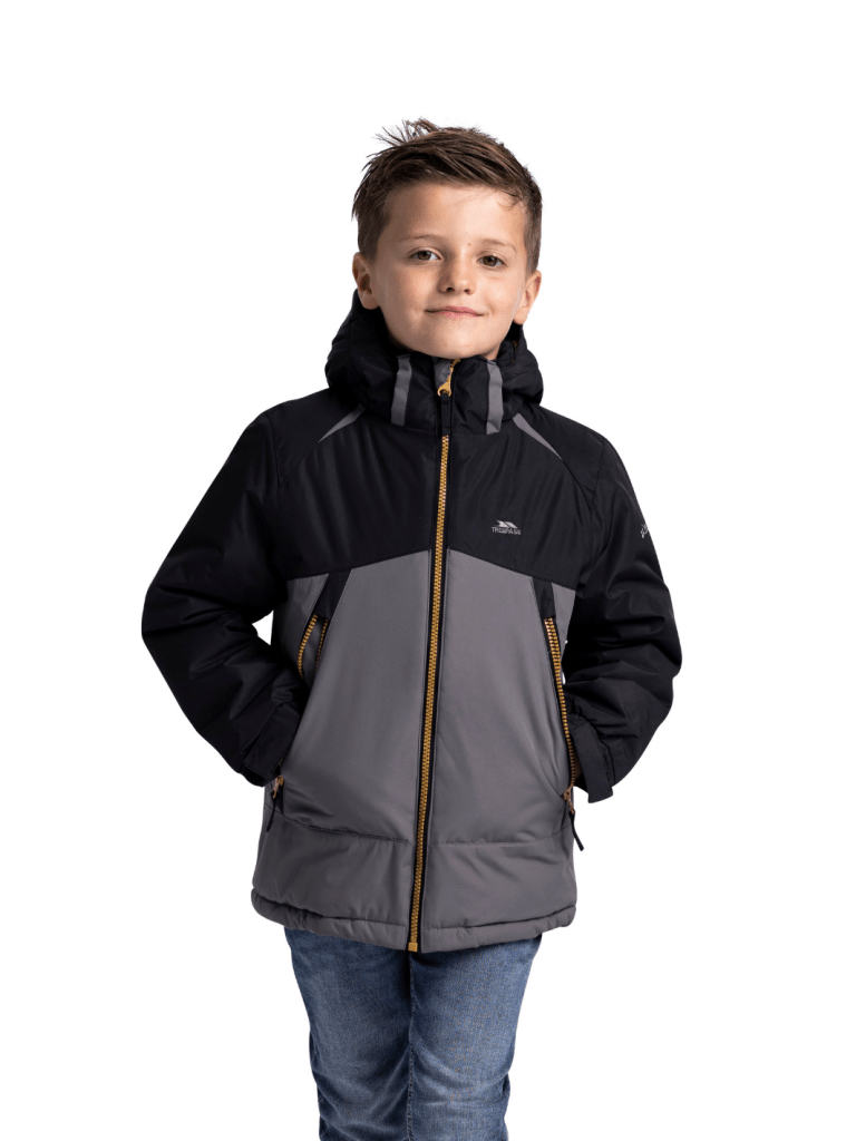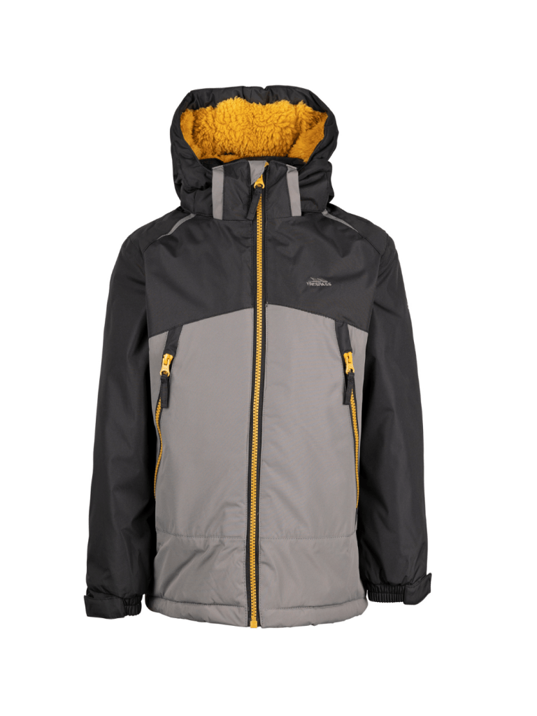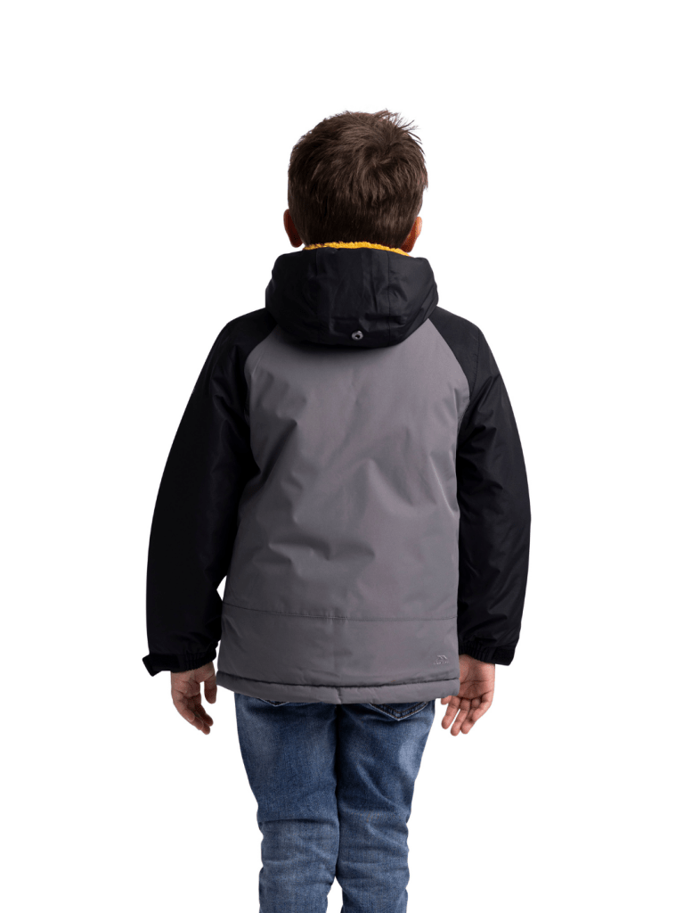 Sort - grå Trespass Discover Børnejakke – perfekt til ski og vintervejr. Hold dit barn varm og beskyttet i sne og kulde med denne funktionelle Trespass jakke. Jakken er foret med både fleece og blød sherpa-fleece, som sikrer høj komfort og varme gennem hele dagen på pisten eller i vinterhverdagen.
