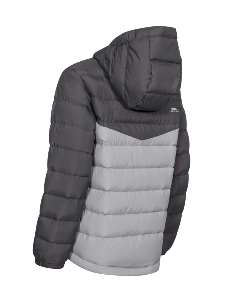 Sort / grå Trespass Oskar B børnejakke. Hold dit barn varmt og komfortabelt i den smarte Oskar dynejakke – en praktisk og funktionel jakke til hverdagsbrug.