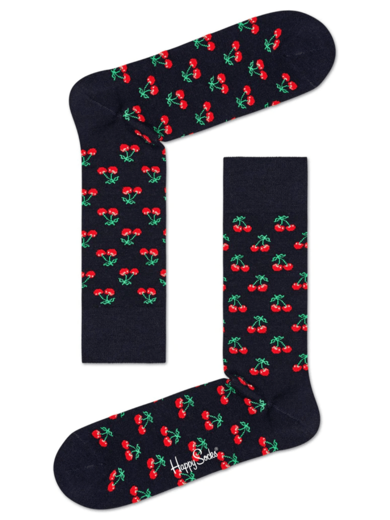 Happy Socks mørkeblå Uld strømpe med kirsebær. Dejlig varm til de kolde dage.