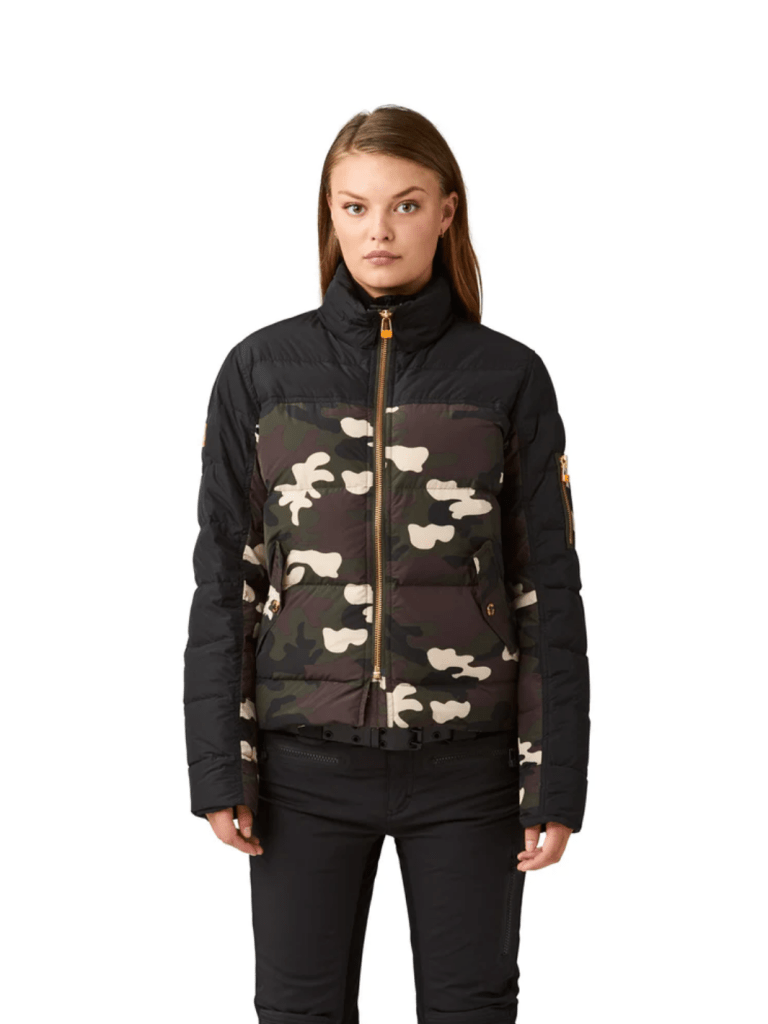 SOS camouflage dunjakke, med kraftige metal lynlåse, snefang, strikkede manchetter på ærmer. Der er lomme på armen, samt to sidelommer med lynlås og knaplukning, og mindre inderlomme med lynlås. Desuden snor træk i taljen, med stopper.