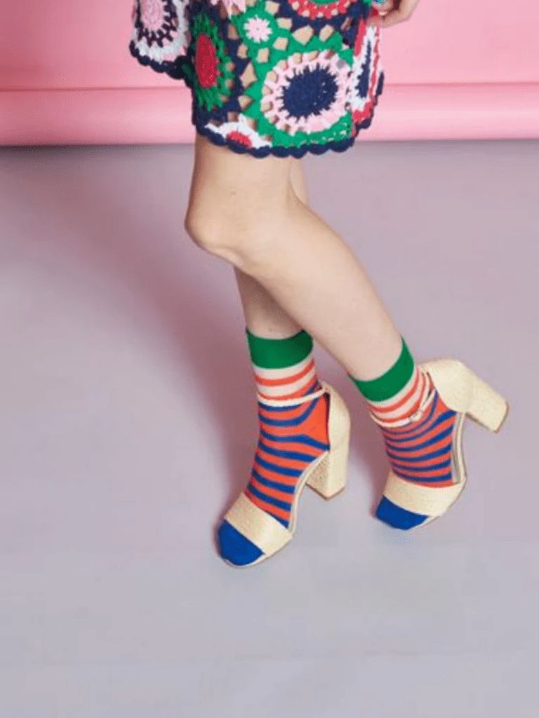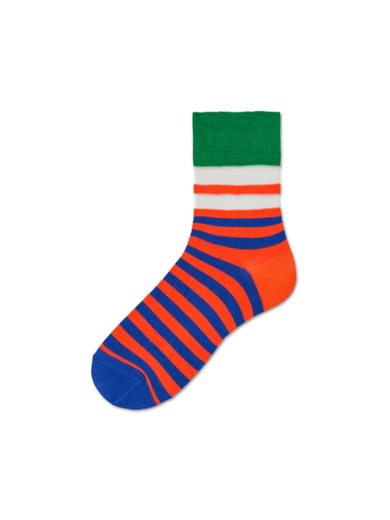Flerfarvet Hysteria strømpe. Opfrisk dit look med disse multistribede Verna ankelstrømper. Dette retroinspirerede design har en kontrastrig manchet, hæl og tå. Fantastisk pasform, tynd, men slidstærk sok der passer alle aldre med sans for mode.