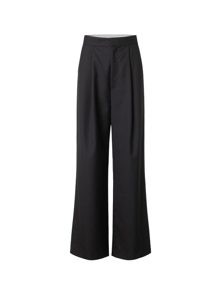 Mørkeblå Pansy Custommade Pinstripe Bukser. Lavet af den lækreste uldblanding og med sin brede pasform er de super flatterende med en skjorte eller strik. Hvorfor ikke gøre det til fuldt jakkesæt med den matchende jakke Fabiana Stripes.