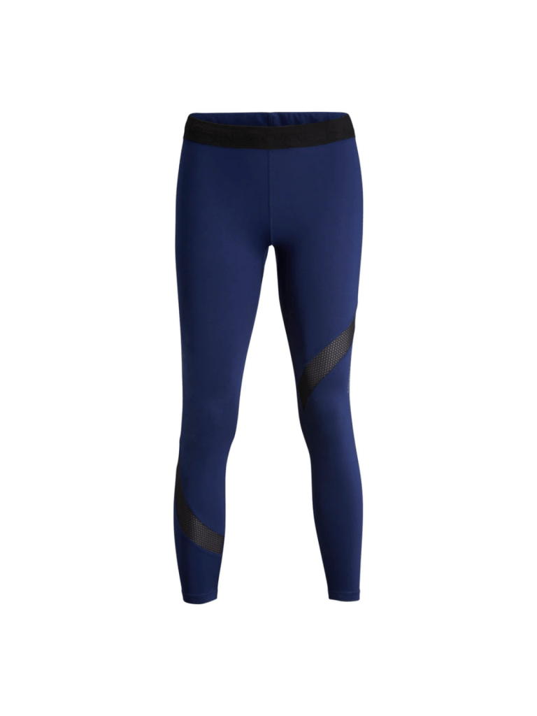 Blå Björn Borg Peggy performance tights, fremstillet i HYDRO PRO-materiale der garanterer en behagelig følelse og fjerner effektivt sved fra huden under sports præstation. Tætsiddende design og med mesh over lår og leg,  Ikonisk Björn Borg logo elastik med snortræk, derudover en lille nøglelomme indvendigt foran. 7/8 lang