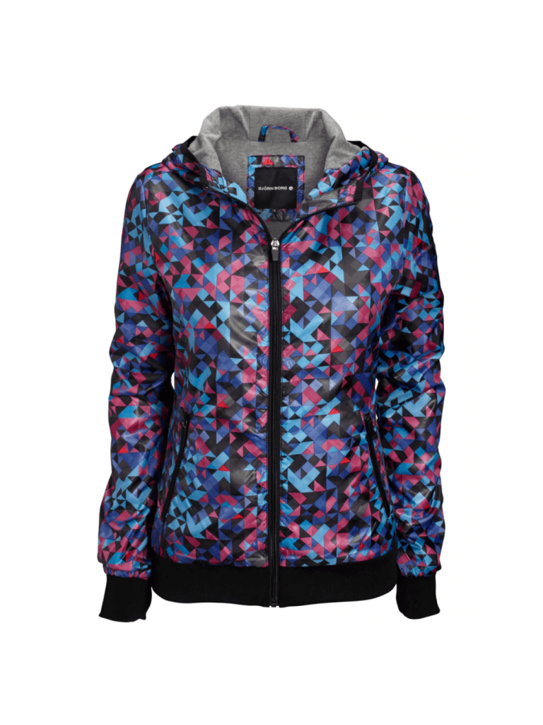 Glat let Björn Borg sporstjakke. Gennem lynet, to sidelommer med lynlås, samt en hætte med snortræk, der holder dig endnu bedre beskyttet. Der er rib i taljen og på ærmer, og et tyndt for.
