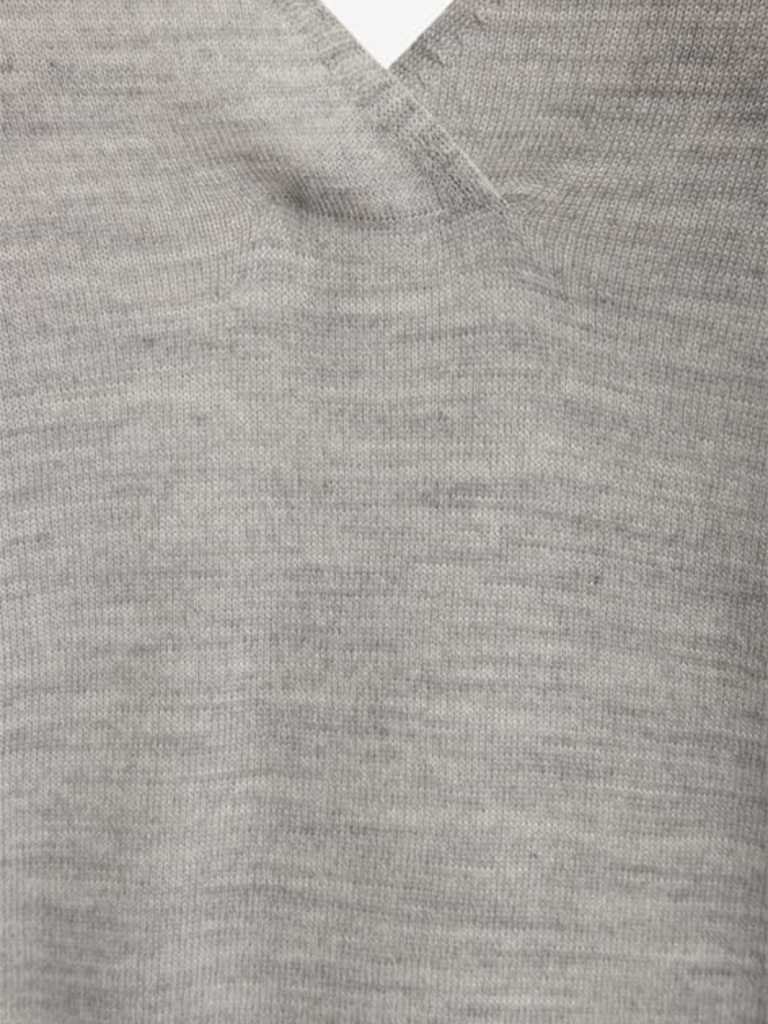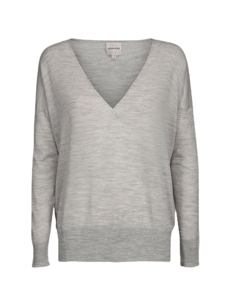 Lys Grå Månestråle V-Hals Strik, fremstillet i den blødeste uld kvalitet. Stort åben v, med plads til en skjorte eller evt. rullekrave. Den fineste strik i Lækker blød kvalitet.