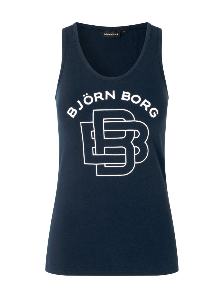 Blå Björn Borg Racerback tank top. Perfekt fit, med stort tryk på bryst samt ekstra forstærkning ved hals og ærmekanter.