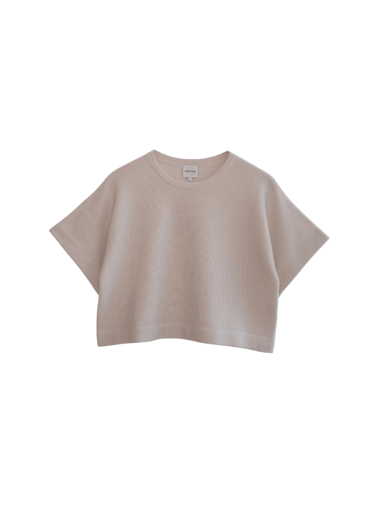 Beige Månestråle Lilja Cashmere Strik Med Korte Ærmer. Fremstillet i det blødeste 100% Cashmere. Fantastisk blød og lækker.