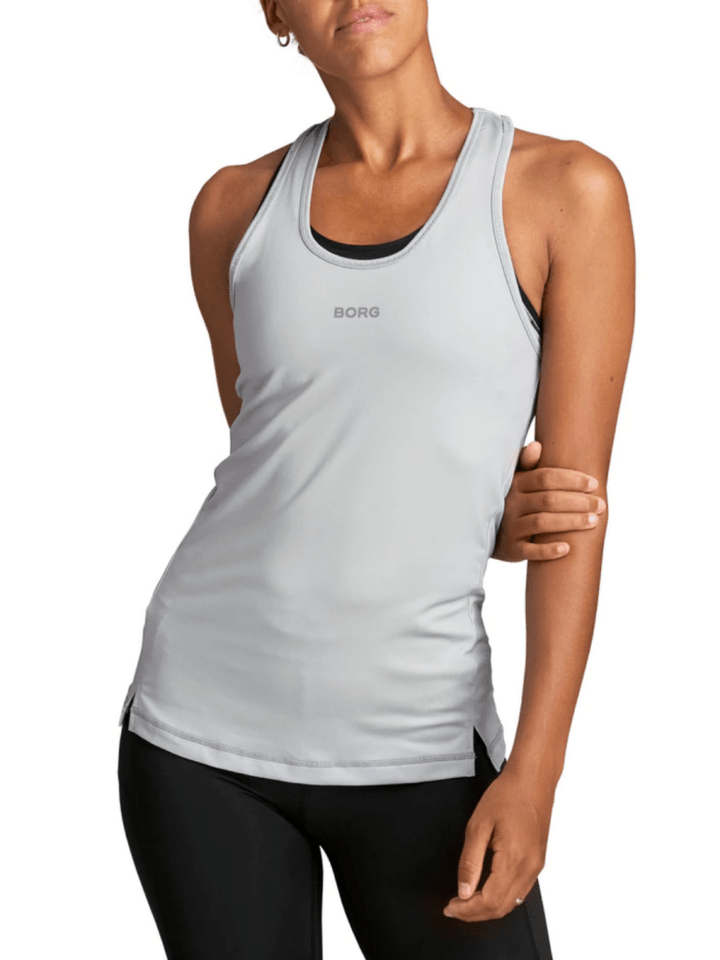 Grå Björn Borg tank top. Perfekt fit, fremstillet i HYDRO PRO-materiale der garanterer en behagelig følelse og fjerner effektivt sved fra huden under sports præstation. Björn Borg logo på bryst, samt ekstra forstærkning ved hals og ærmekanter.