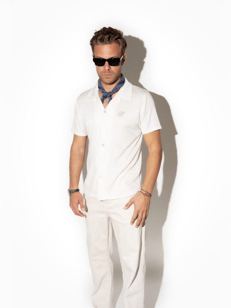 Creme Camp Collar Skjorte er den ideelle sommerledsager. Bær den på stranden, skovturen eller til en afslappet havefest. Lavet af en luksuriøs og åndbar blanding af Lyocell & Økologisk Bomuld. Dekoreret med et brystbroderi. Forvasket for at undgå krympning i vask. Produceret i Portugal.