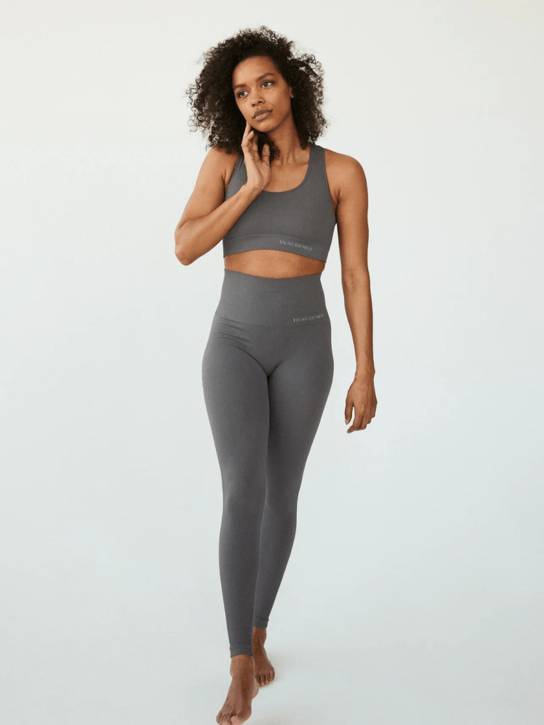 Sømløs grå Dear Denier Rib Leggings. Lavet i 3D teknologi som sikrer den bedst mulige pasform og holdbarhed. Tæt siddende, med mulighed for masser af bevægelse i det fleksible stof. Det ekstra høje waistband sikrer den perfekte pasform.