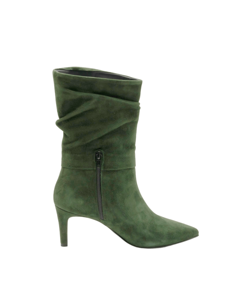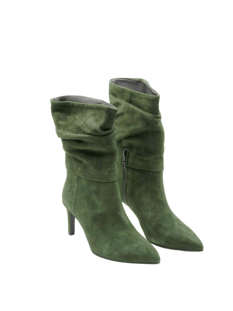Grøn unik Apair Verde halvstøvle med 7cm hæl, fremstillet i det blødeste ruskind. Har lynlås på indersiden. En smuk og stilet støvle til al slags brug.