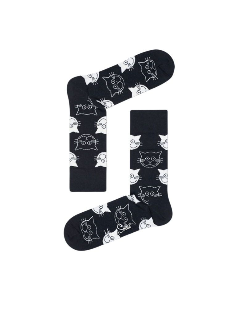 Til Hende der bare elsker katte. Et must have. Sort/creme strømpe med katte motiver. Den perfekte sok til den kræsne, eller den smarte hipster. Fantastisk pasform