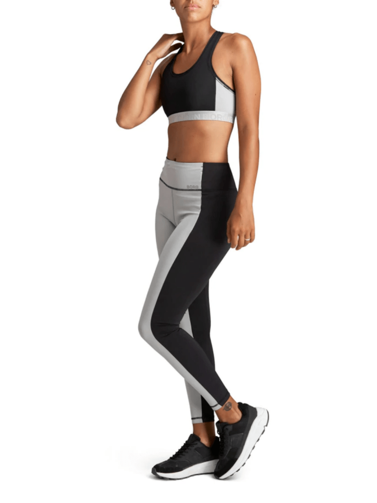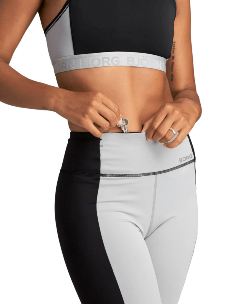 Grå-sort Björn Borg performance tights, fremstillet i HYDRO PRO-materiale der garanterer en behagelig følelse og fjerner effektivt sved fra huden under sports præstation. Tætsiddende design og med Ikonisk Björn Borg logo i taljen, snor træk, derudover en lille nøglelomme indvendigt foran.