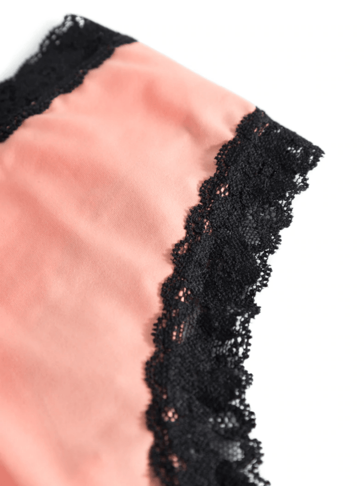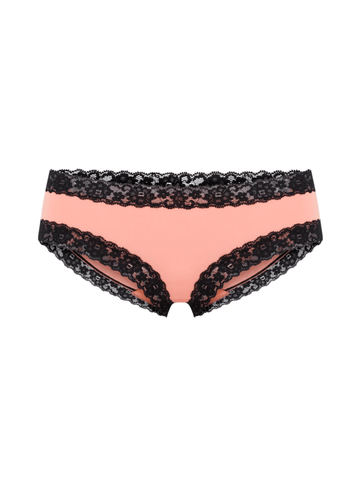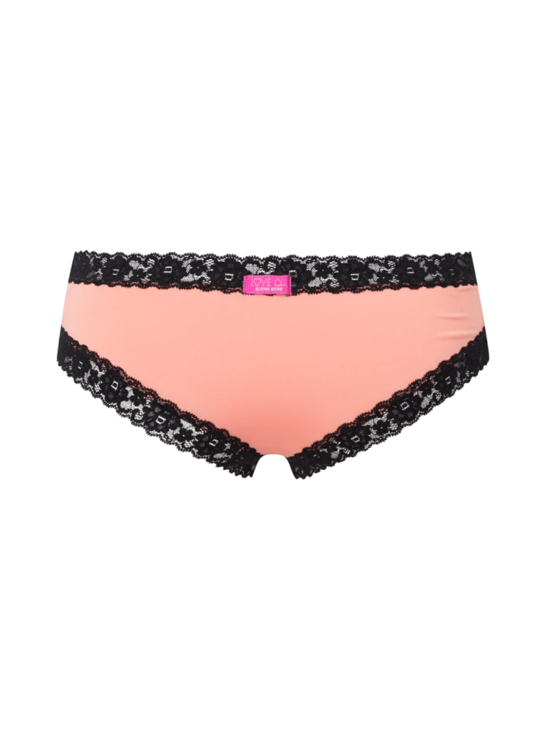 Björn Borg`s kendte Blonde Lace Hipster, i  Perfekt pasform, med bløde blonde " kanter ", så den ikke strammer. Laksefarvet med sorte blonde kanter.