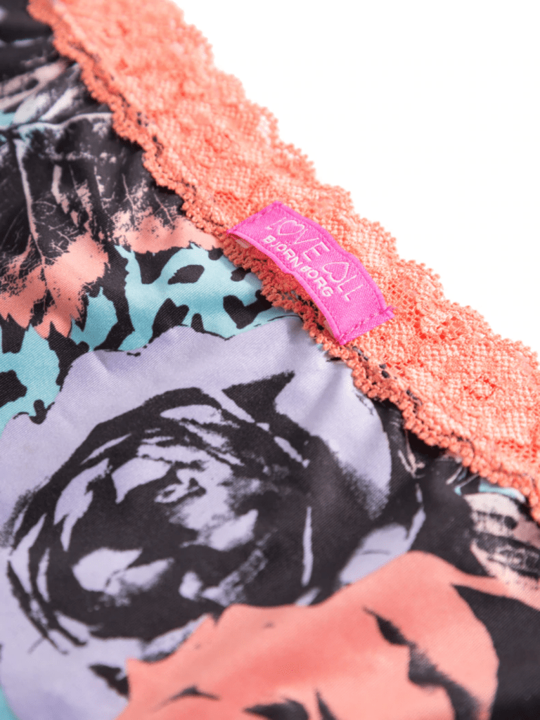 Björn Borg`s kendte Blonde Lace Hipster, i  Perfekt pasform, med bløde blonde " kanter ", så den ikke strammer. Her med vilde roser og leopard som motiv, samt orange blonde kanter.