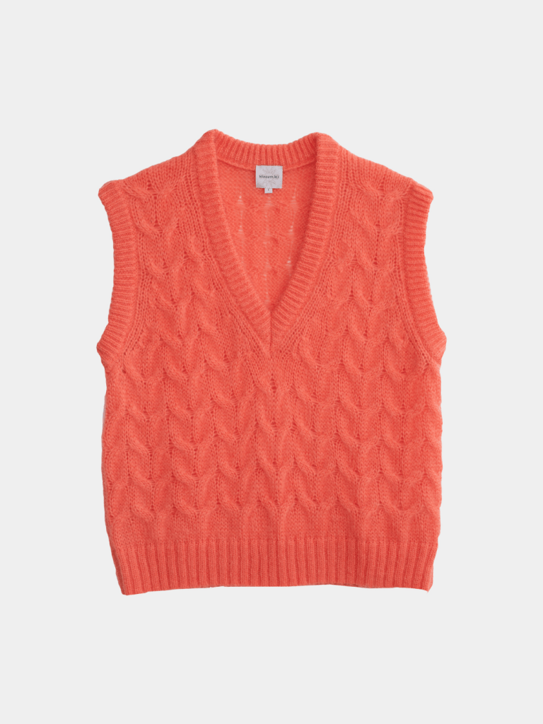 Koral Månestråle Mohair strikvest med v-Hals. Ekstra Kraftig strikket ved hals og ærmegab. Perfekt til de kolde dage, over f.eks. en skorte eller rullekrave.