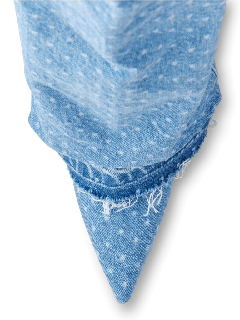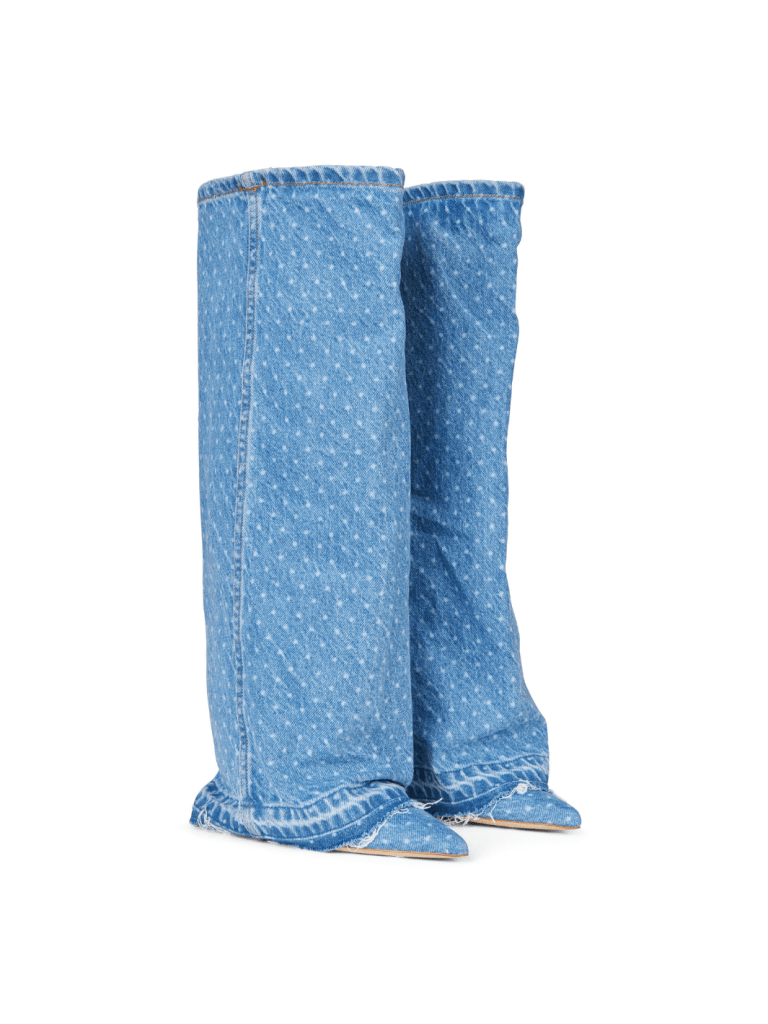 Lyseblå prikket Anie Custommade denim støvle. Produceret i Bomuld/genbrugsbomuld, i et helt særpræget design, og behagelig pasform. Et must have til garderoben.