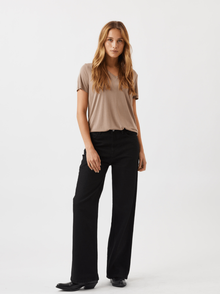 Lysebrun Minimum Rynih T-shirt. En kortærmet T-shirt lavet af 70 % modal (TENCEL TM) og 30 % genanvendt polyester for en blød kvalitet. T-shirten har en normal pasform og har V-udskæring.