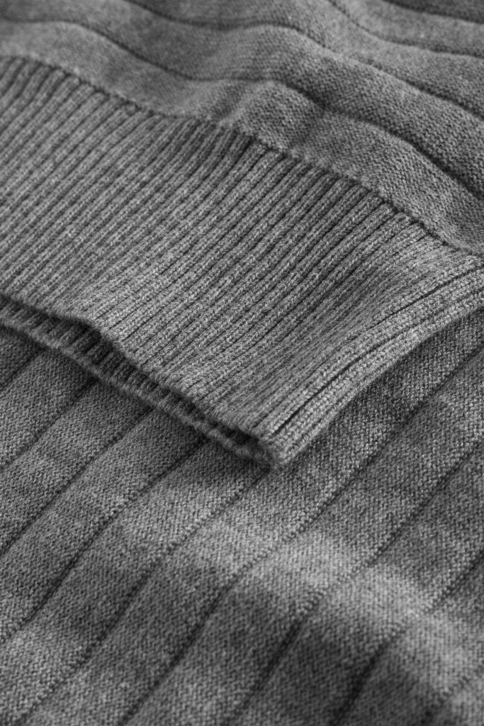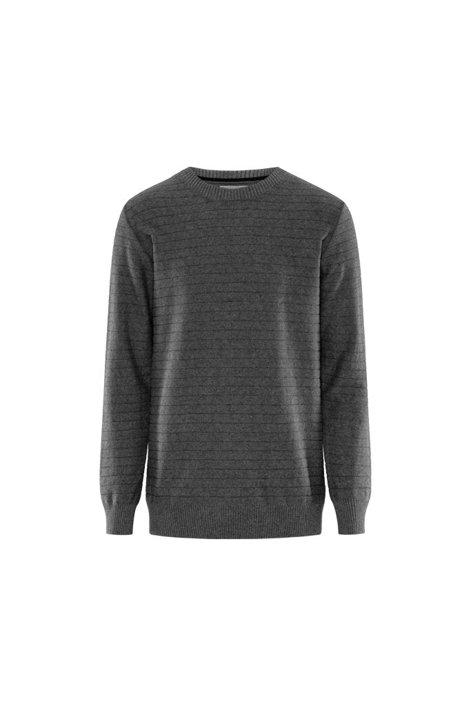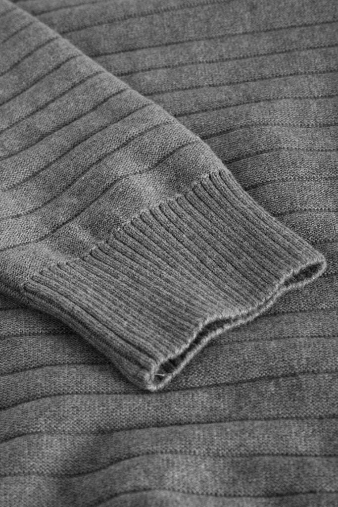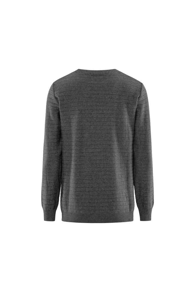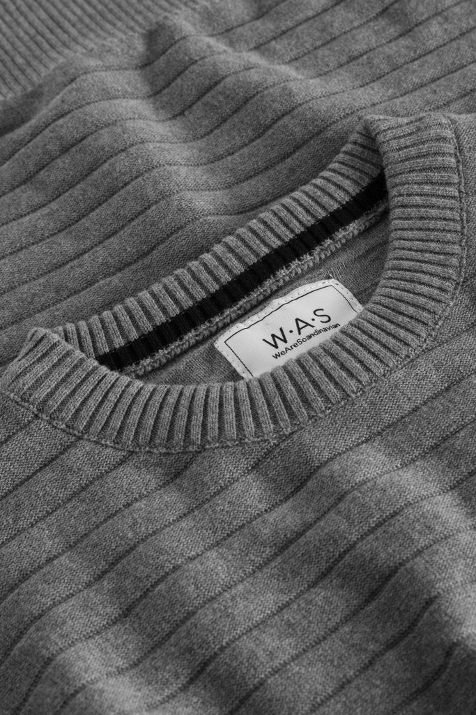 Vores eget mærke W.A.S. Grå Miami strik. Klassisk inspireret, men alligevel vævet i et trendy design, med ribkant i talje og ærmer, og rund hals.