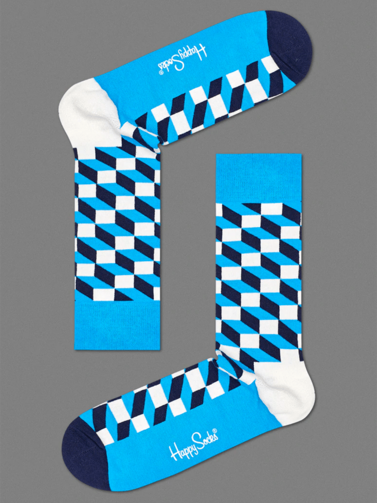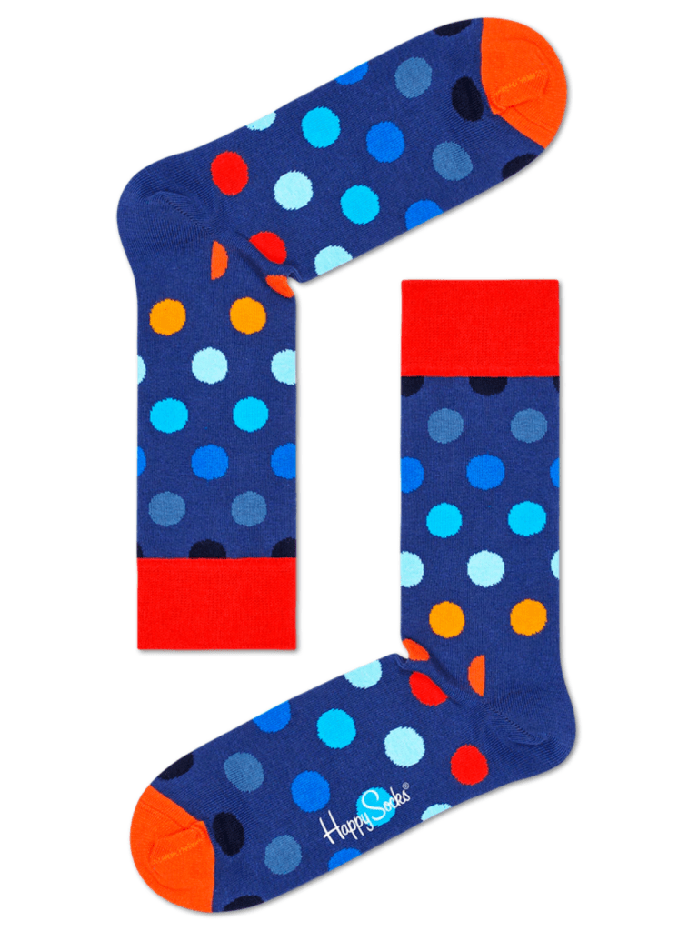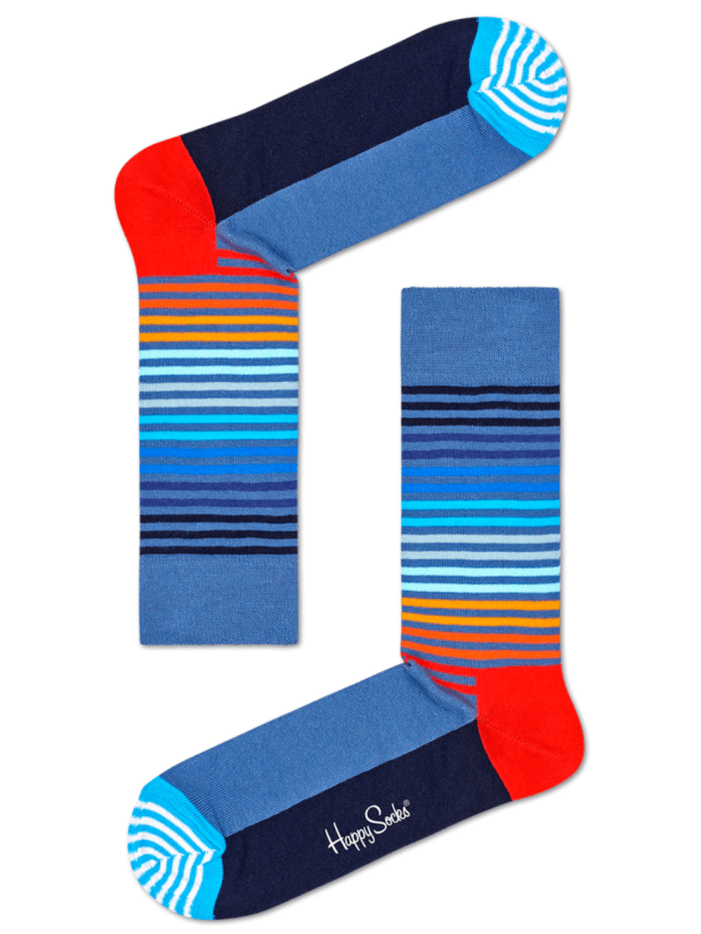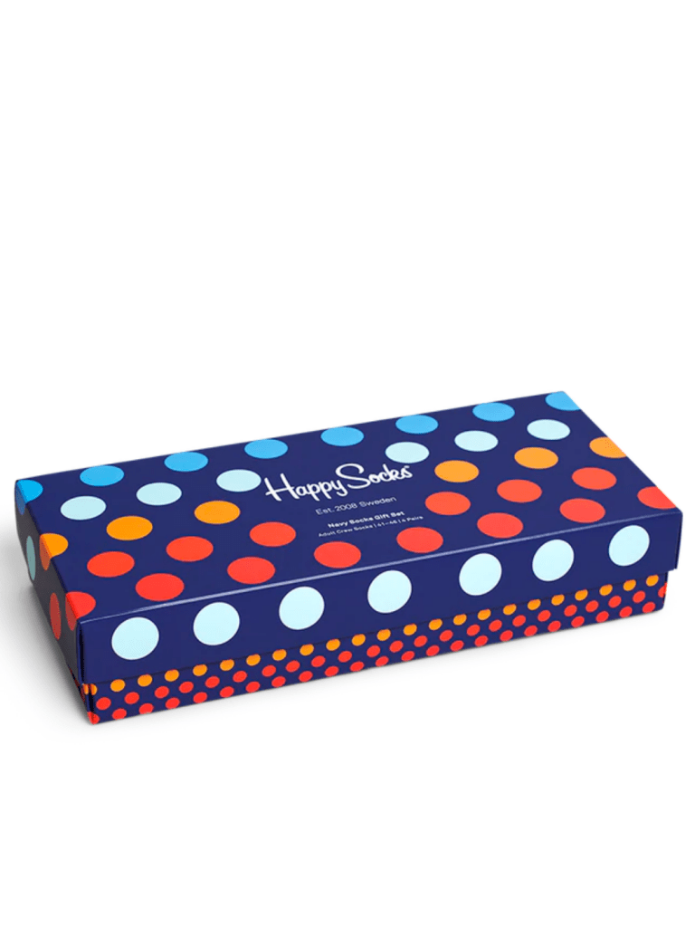 Fin 4-pack Happy Socks Gaveæske med bla. striber, tern og prikker i sorte, blå, røde og hvide nuancer.