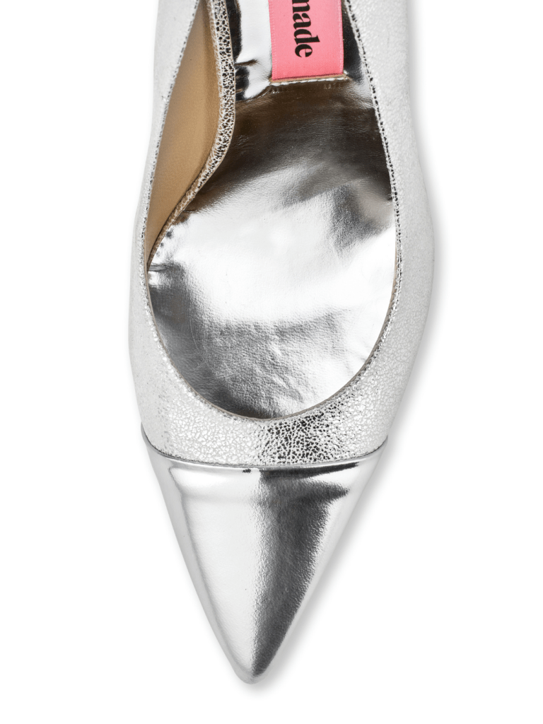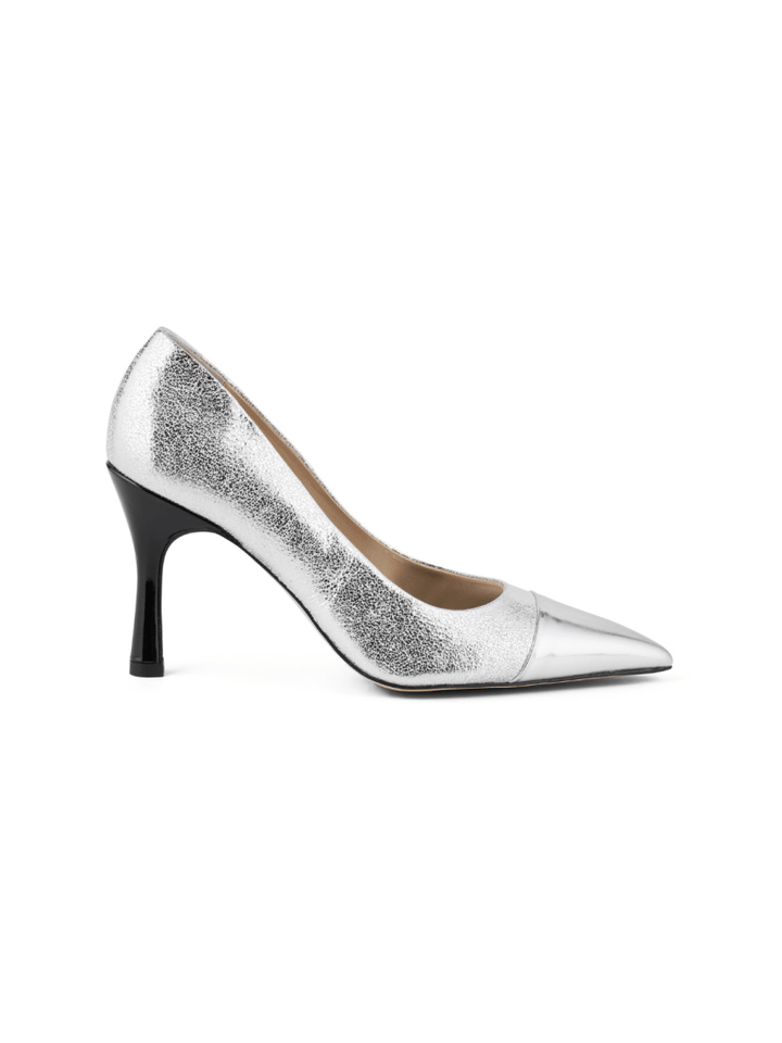 Sølvfarvet Awa Custommade Stilet med med blank snude, produceret i gedeskind. Den har en hælhøjde på 10cm, blank snude. En flot og elegant stilet til alsidig brug.