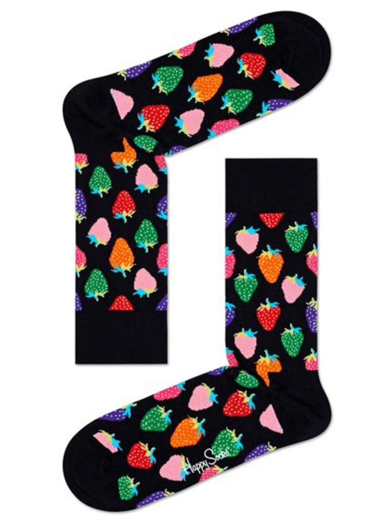 Happy socks - Sort Herre sok med Jordbær. Den perfekte sok til den kræsne, eller den smarte hipster. Fantastisk pasform