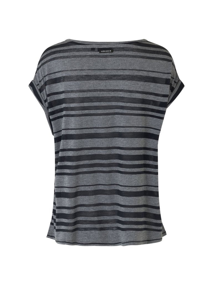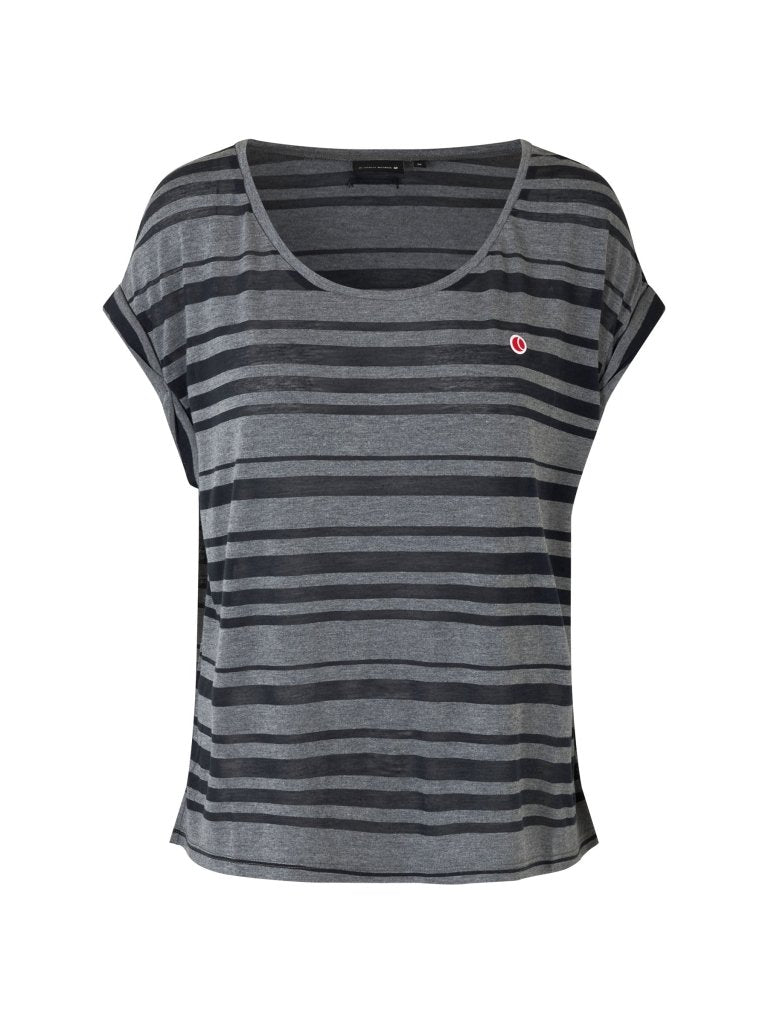 Grå/Blå stribet Björn Borg dame T-shirt med lille logo på bryst. Perfekt til al slags brug. Stor hals, opsmøg på ærmer.