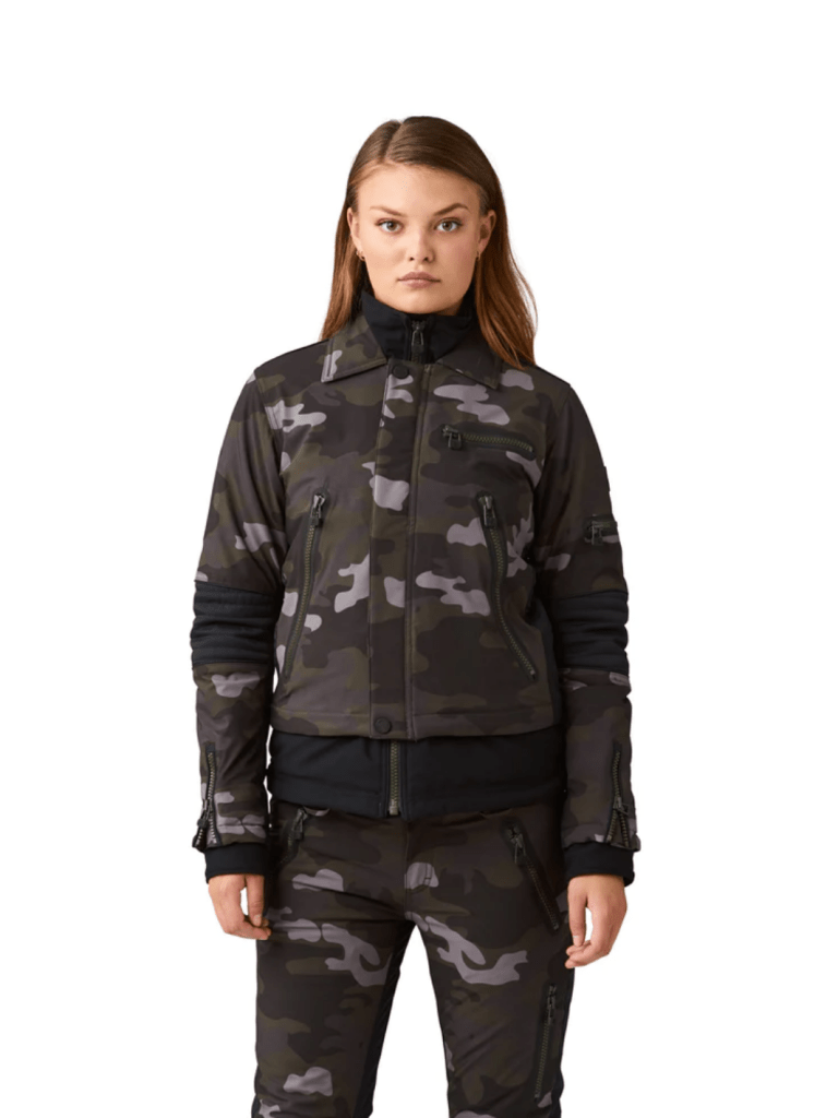 Womens Camouflage Biker jakke i 4-vejs stretch. Den perfekte jakke til f.eks. Ski. Den er let, men samtidig varm og isolerende, takket være det fantastiske primaloft isolering.